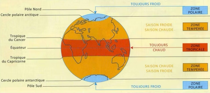 De manière générale, il existe trois grandes zones climatiques dans le monde auxquelles correspondent divers types de climats: