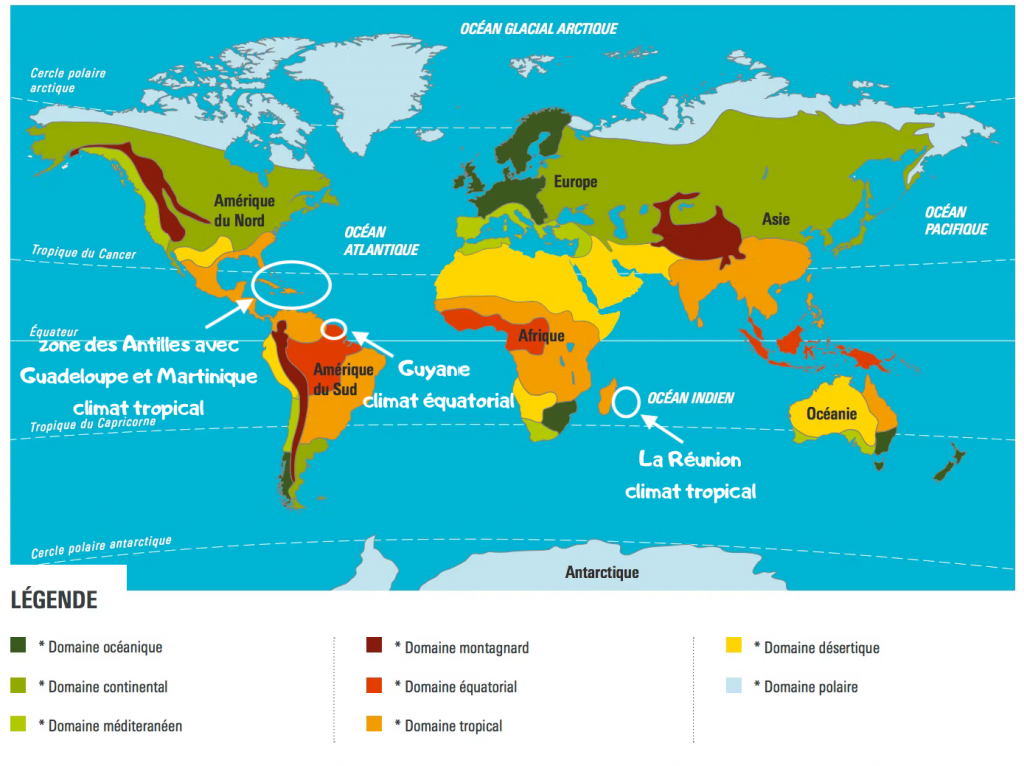 - les climats intertropicaux ou chauds (zone chaude/intertropicale)